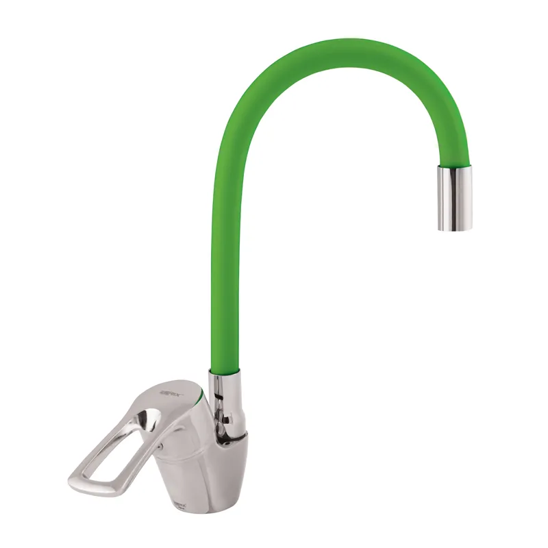 Змішувач для кухні Zerix YUB 181 із зеленим гнучким виливом (ZX0437)